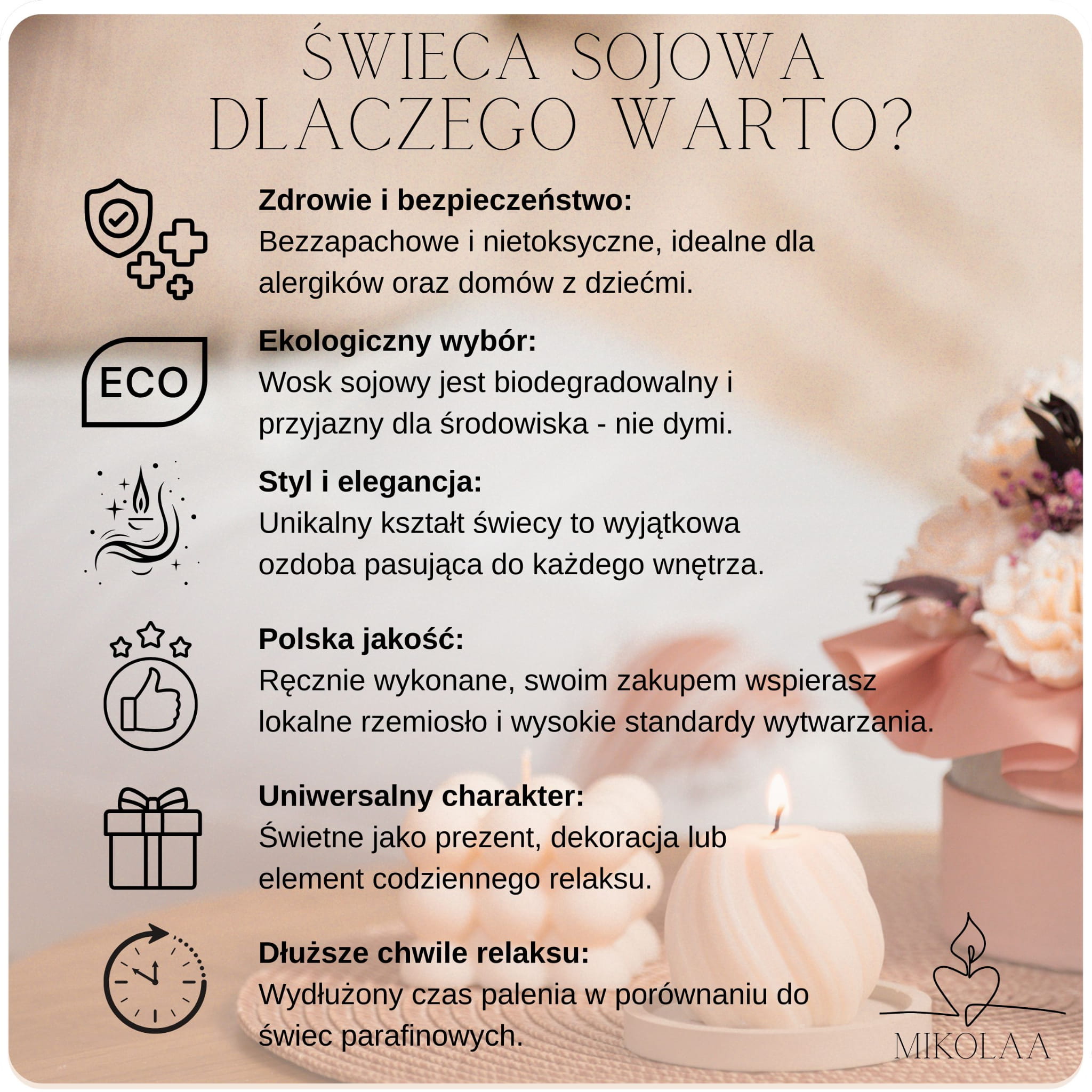 ☀️ Świeczki wykonane z wosku sojowego nie generują szkodliwych oparów, są bezpieczne dla całej rodziny i zwierząt domowych