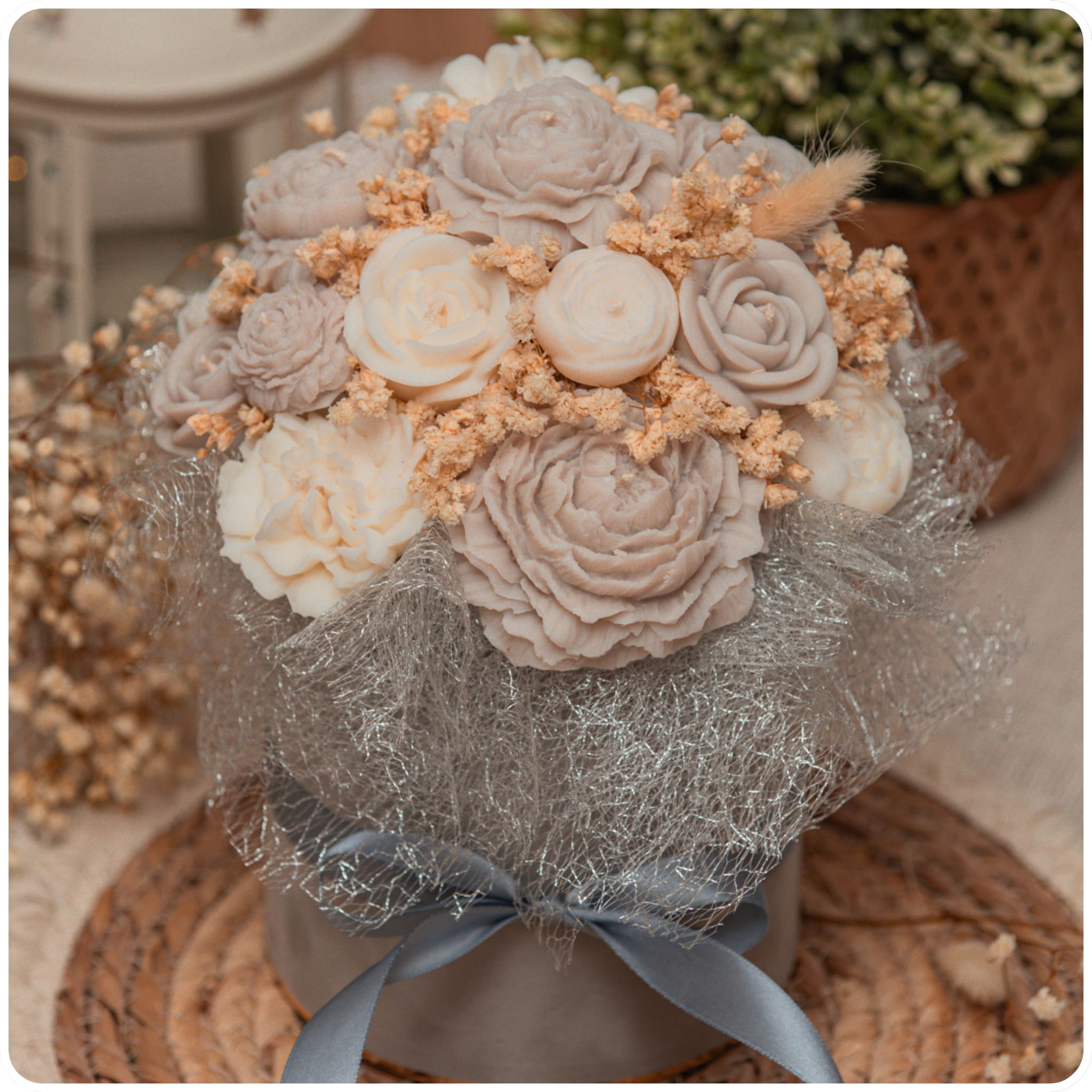 BOX W ZALEŻNOŚCI O WYBRANEGO ROZMIARU SKŁADAĆ SIĘ BĘDZIE Z ODPOWIEDNIEJ LICZBY KWIATÓW SOJOWYCH. IM WIĘKSZY BOX TYM ANALOGICZNIE WIĘKSZA KOMPOZYCJA, PRZYCZYM BOX ROZMIAR S SKŁADA SIĘ Z: 10SZT. ŚWIEC SOJOWYCH: TRZY ŚWIECE "DUŻA PEONIA", PIĘĆ ŚWIEC "MAŁY GOŹDZIK", DWÓCH ŚREDNICH KWIATÓW ORAZ DODATKÓW W POSTACI GIPSÓWKI ORAZ PAPIERU OZDOBNEGO.