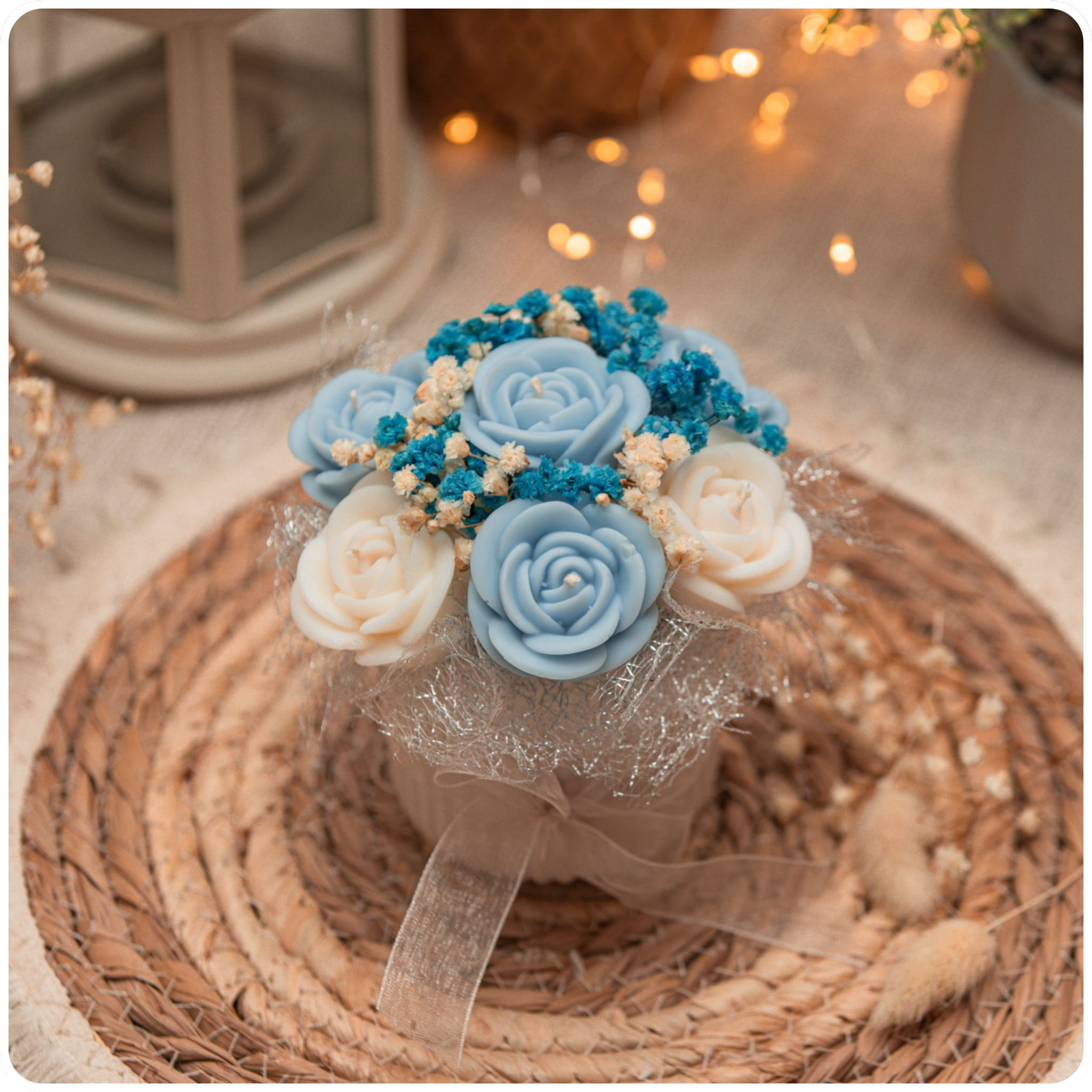 Flower Box Ze Świecą Róże Bezzapachowy Niebieski Gips