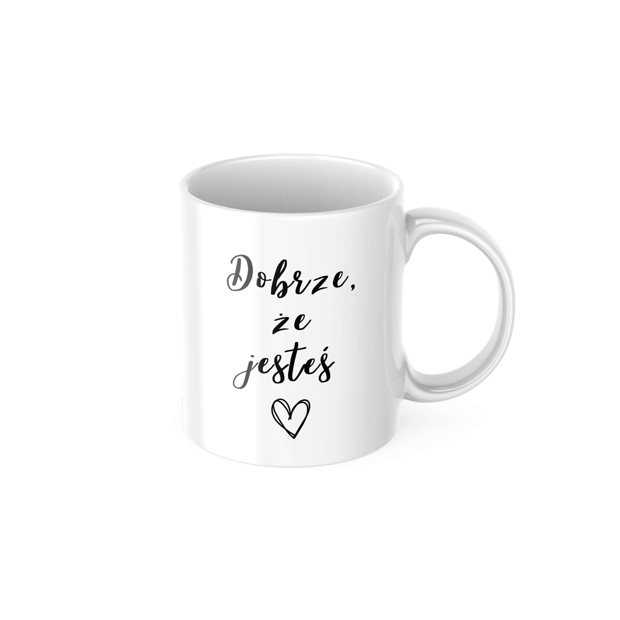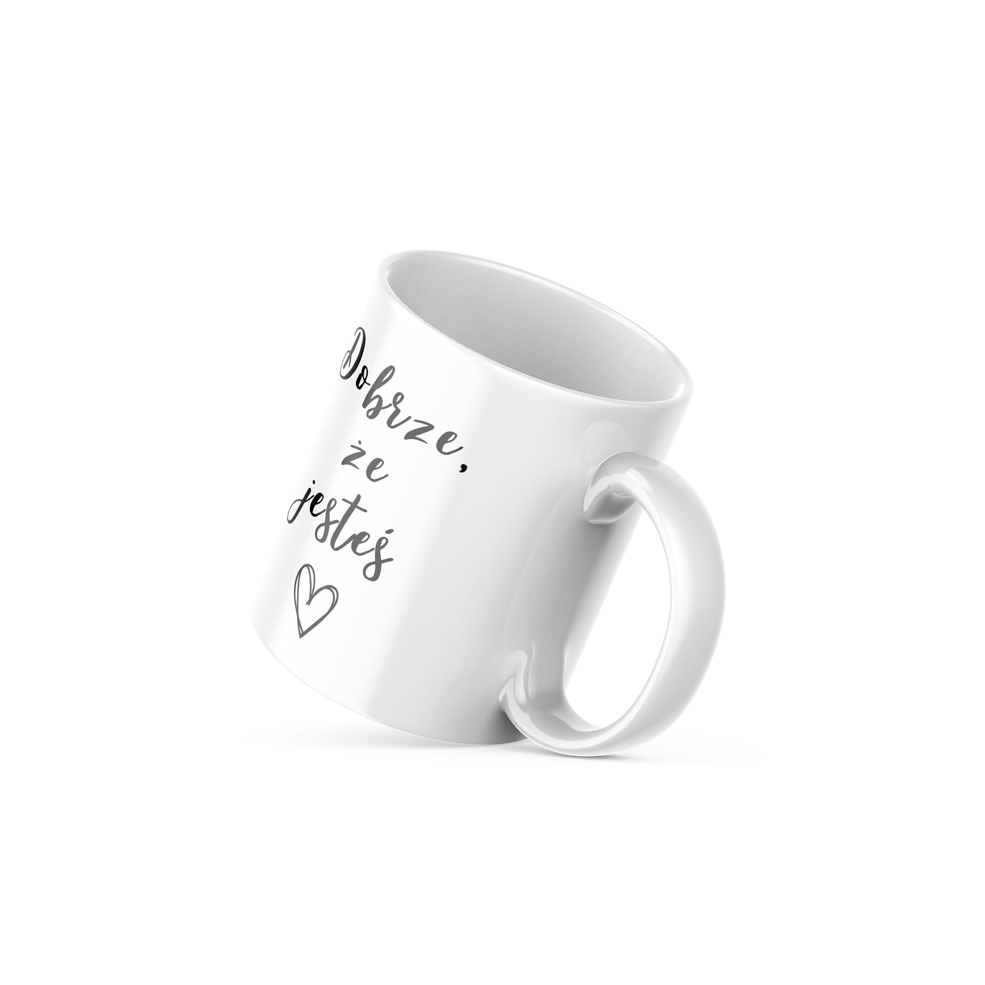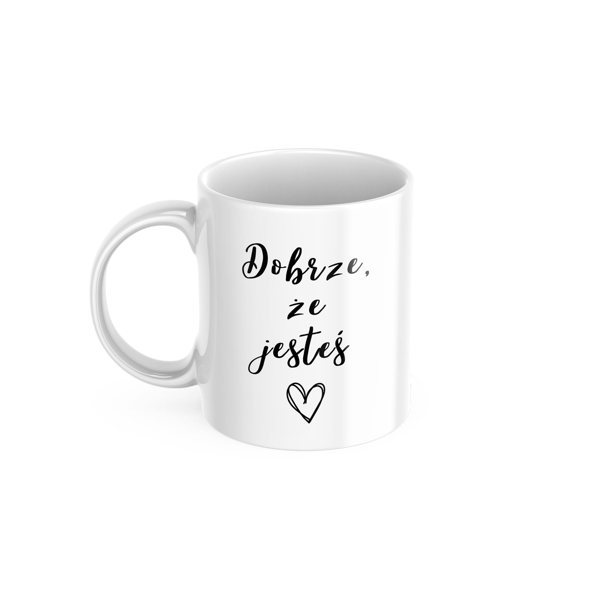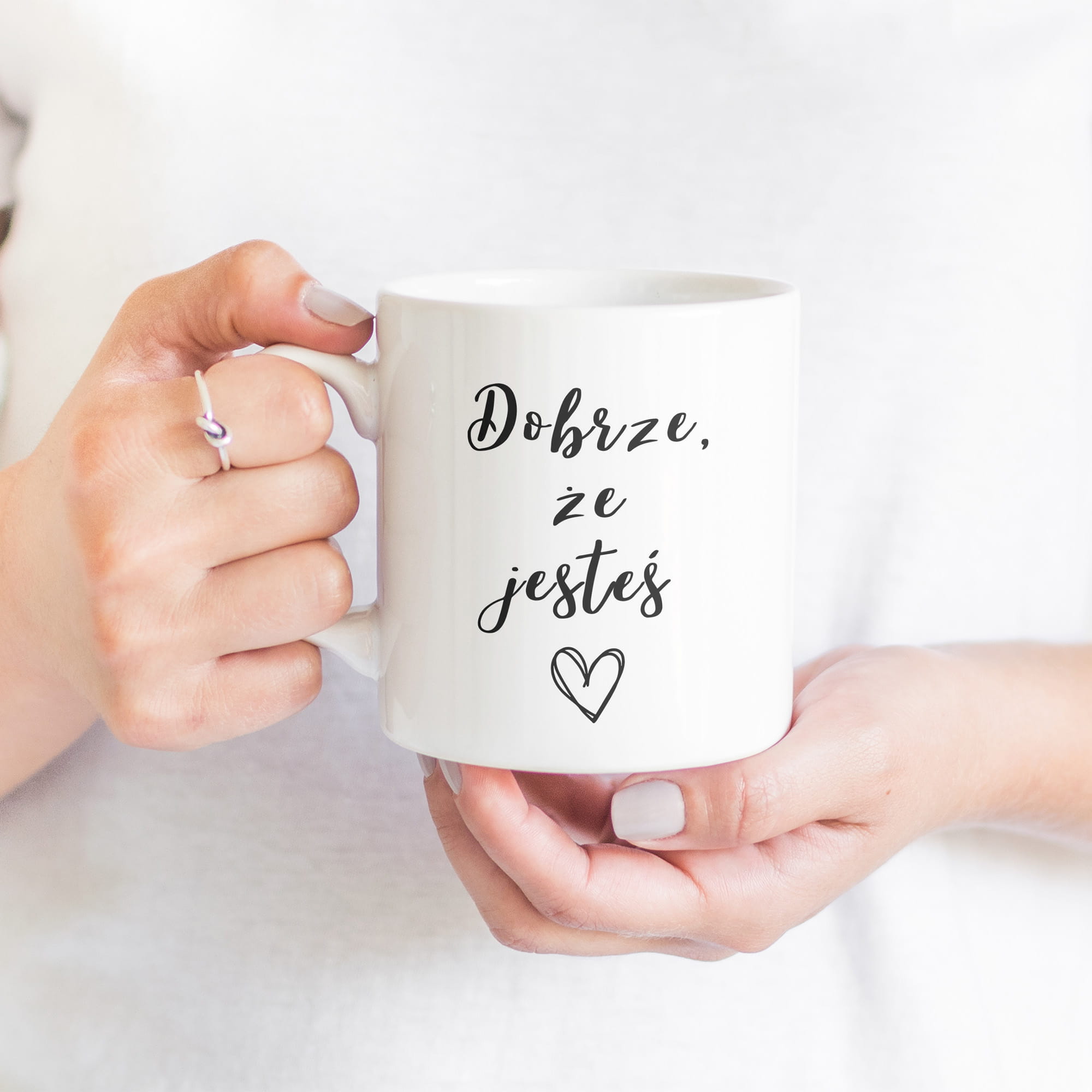 Kubek o pojemności 330 ml z napisem „Dobrze, że jesteś”