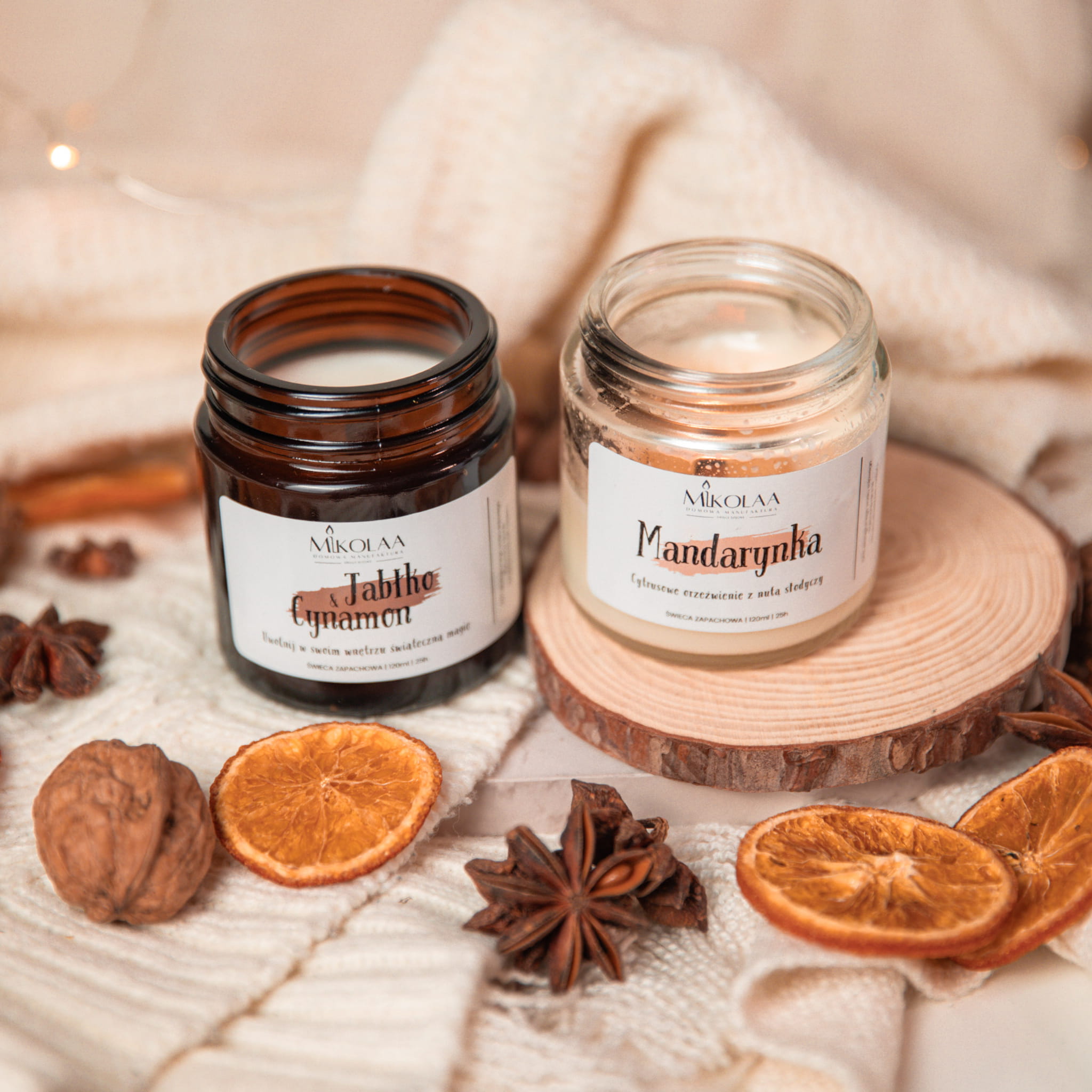 NATURALNA I EKOLOGICZN ZESTAW ŚWIEC SOJOWYCH - JABŁKO Z CYNAMONEM I MANDARYNKA
