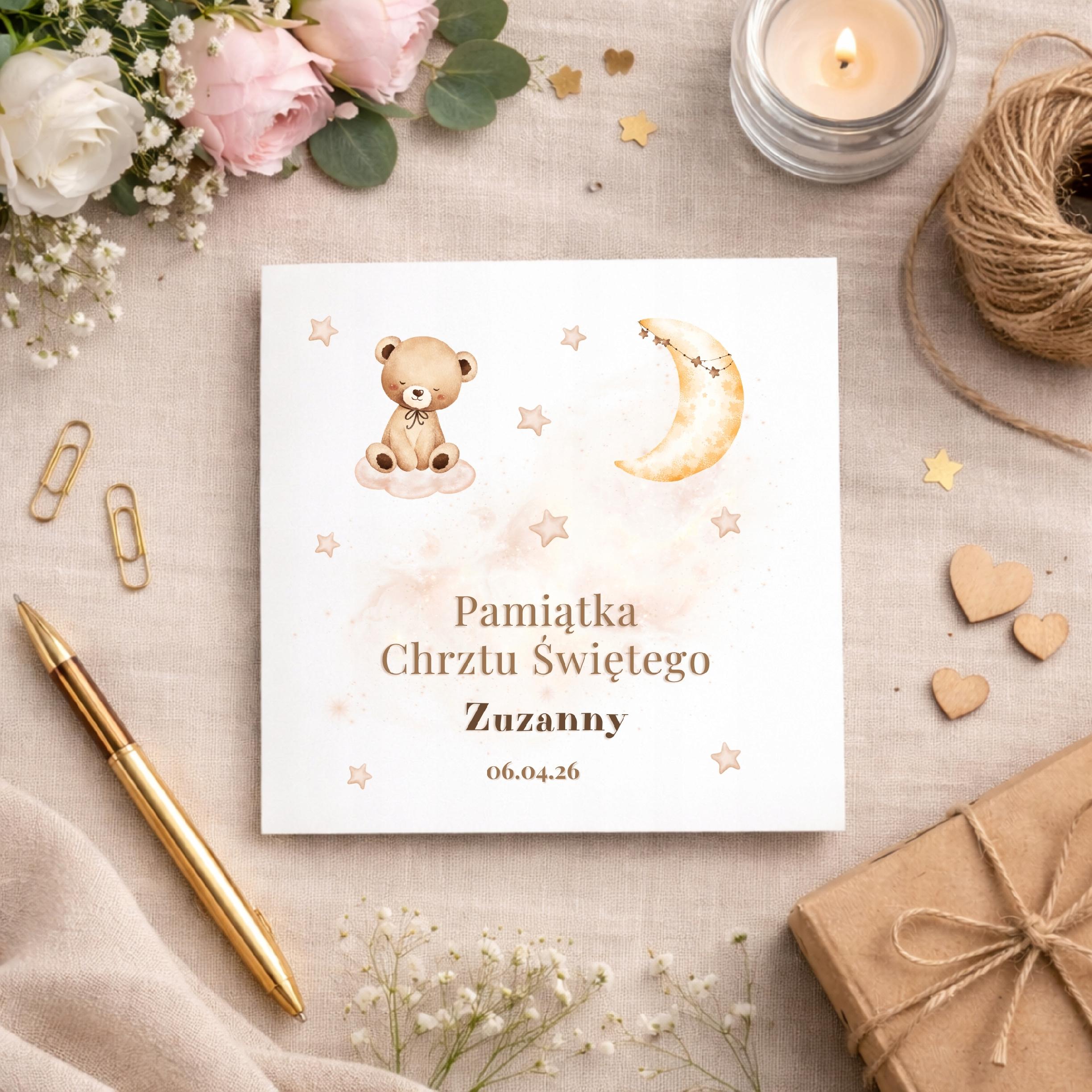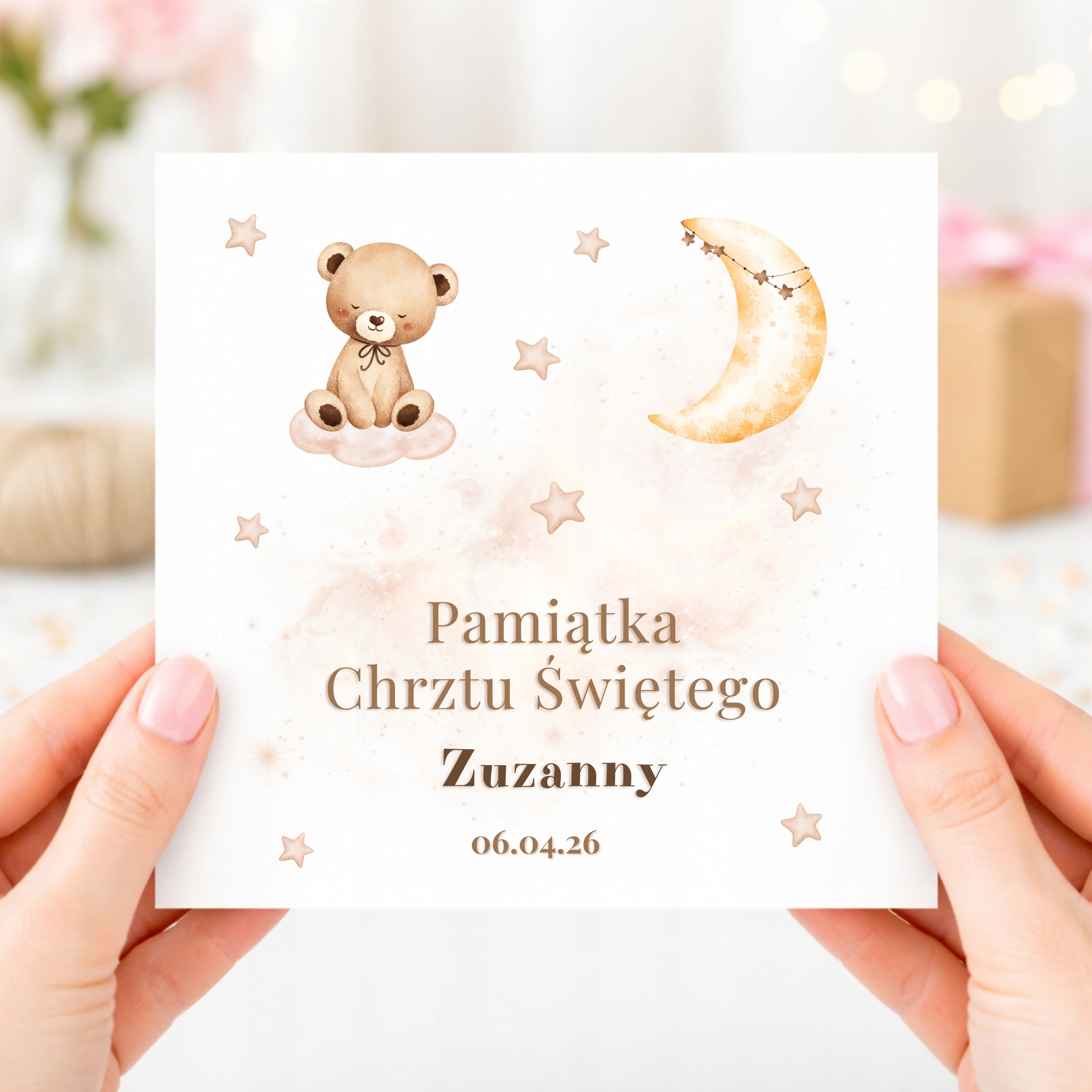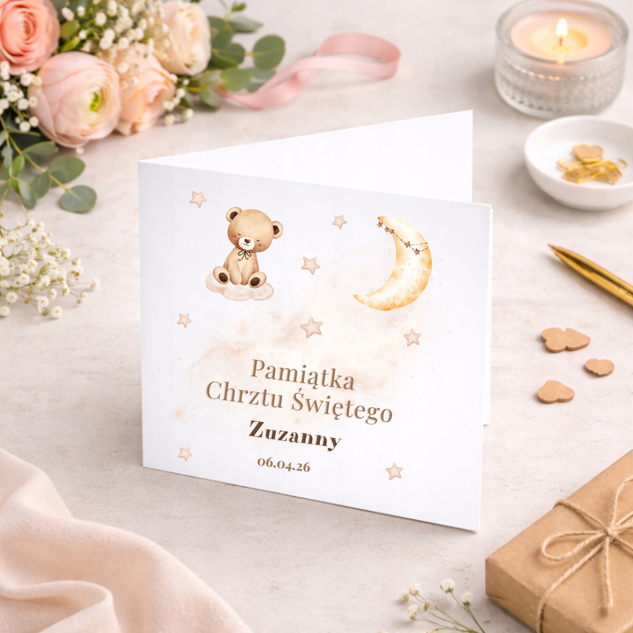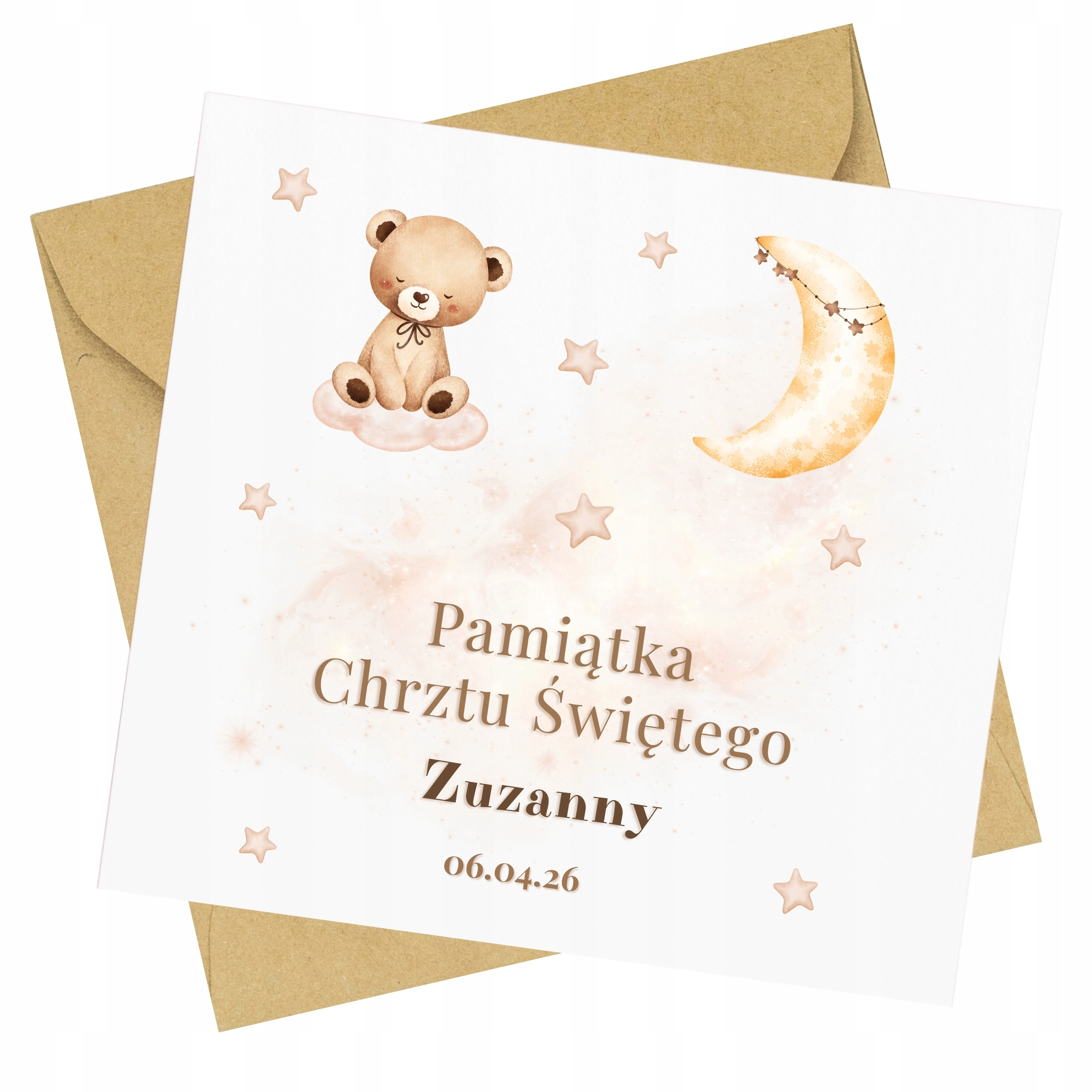 ⭐ Kartka Na Chrzest Święty Roczek Personalizowana Na Prezent Pamiątka Księżyc ⭐