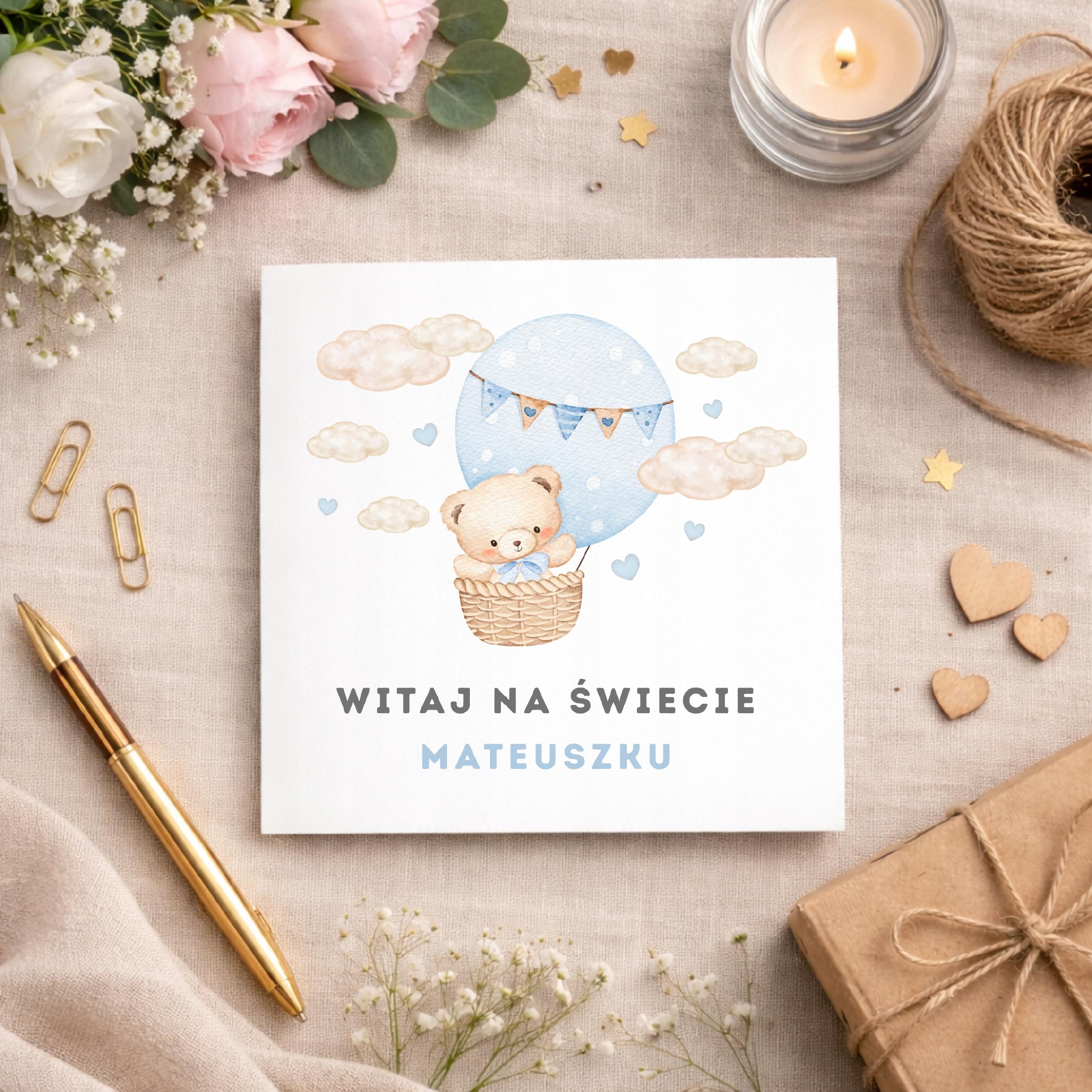 Kartka Witaj Na Świecie Roczek Personalizowana Prezent Chłopiec Chrzest Św.