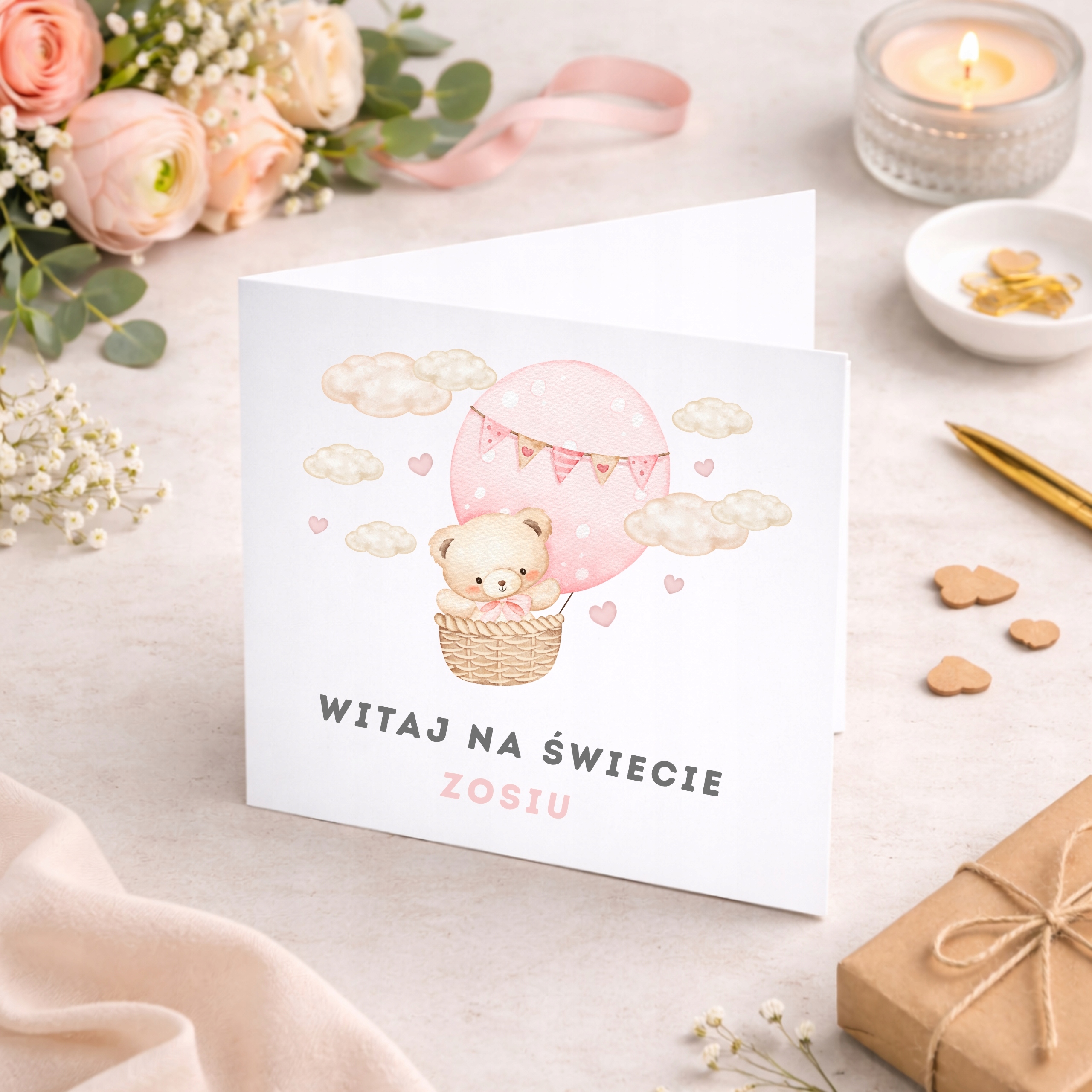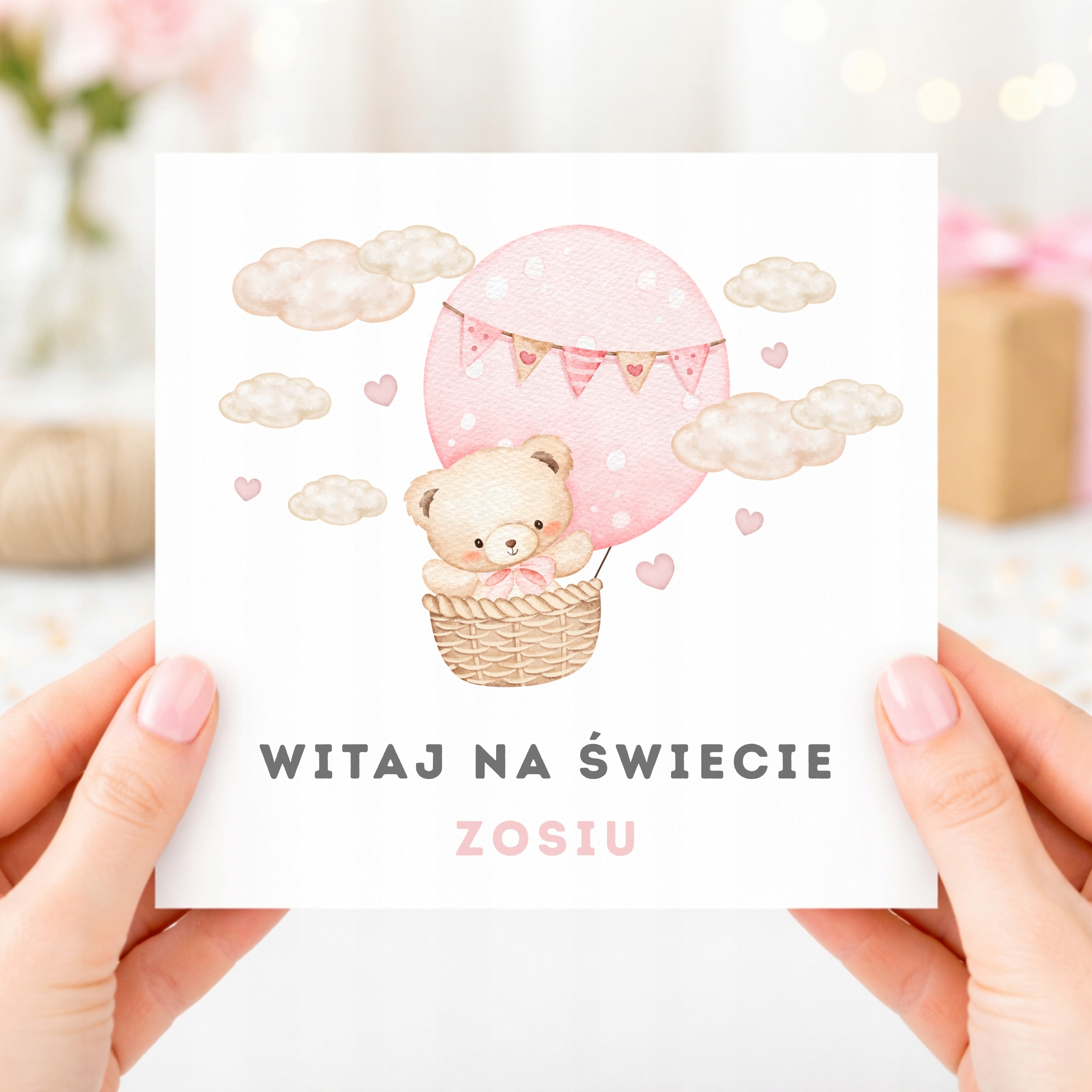 ⭐ Kartka Witaj Na Świecie Roczek Personalizowana Prezent Dziewczynka Chrzest Św. ⭐