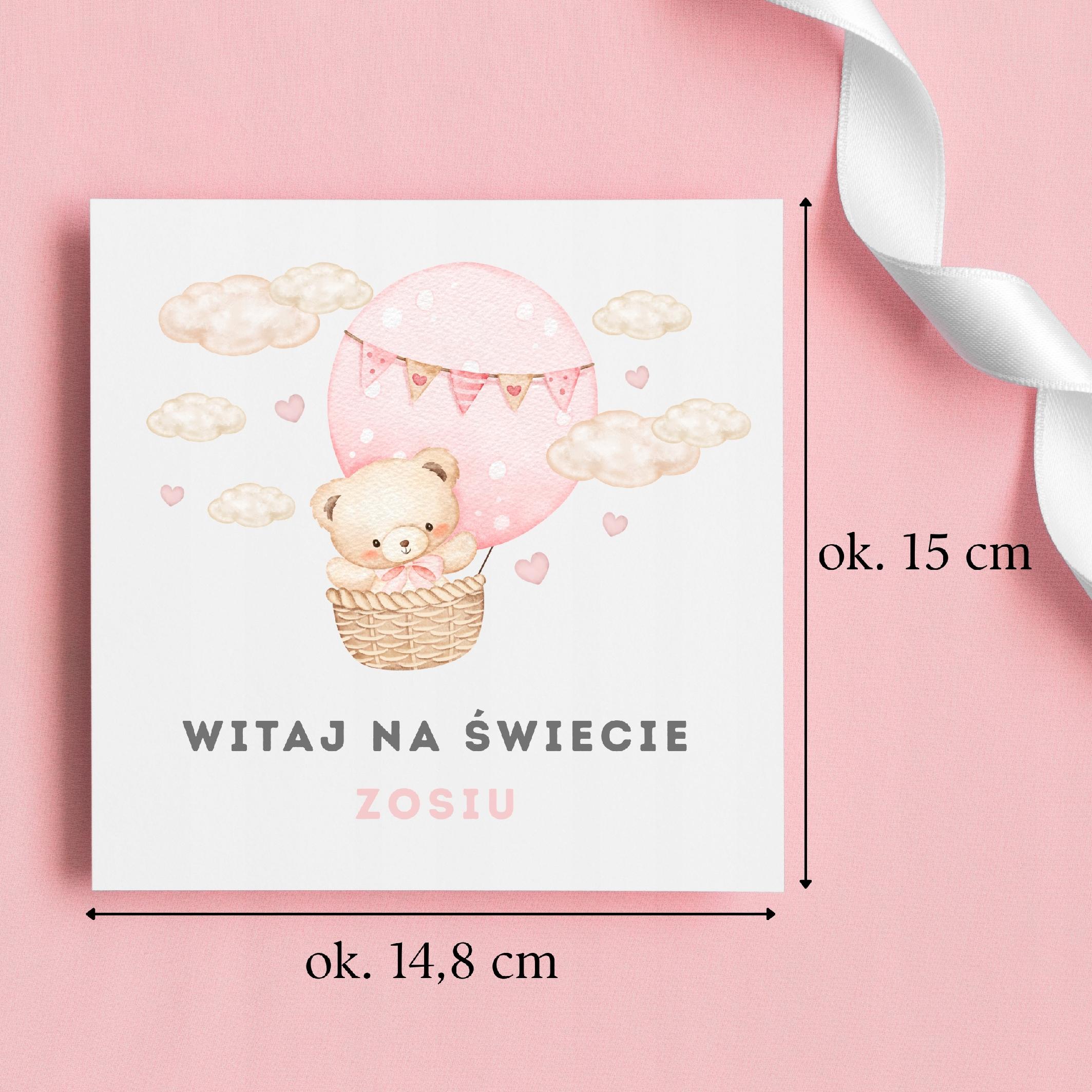 Kartka Witaj Na Świecie Roczek Personalizowana Prezent Różowa Chrzest Św.