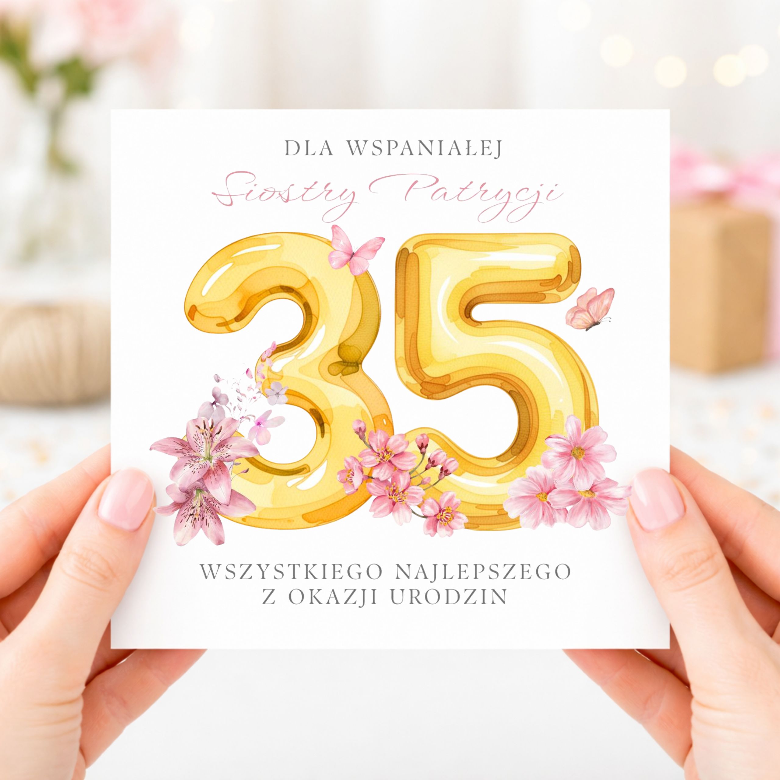 Kartka na 35 Urodziny Kartka Urodzinowa Personalizowana na Prezent