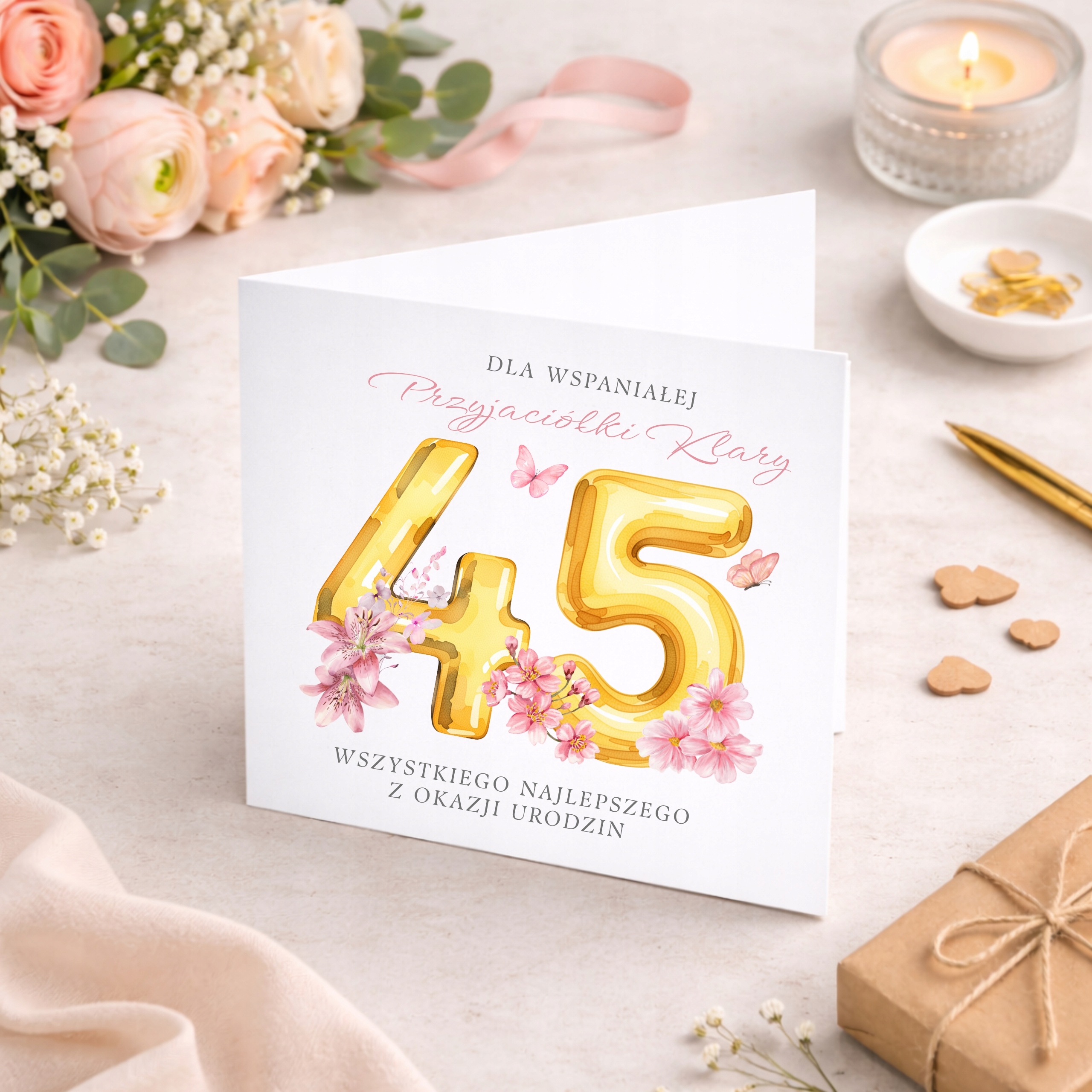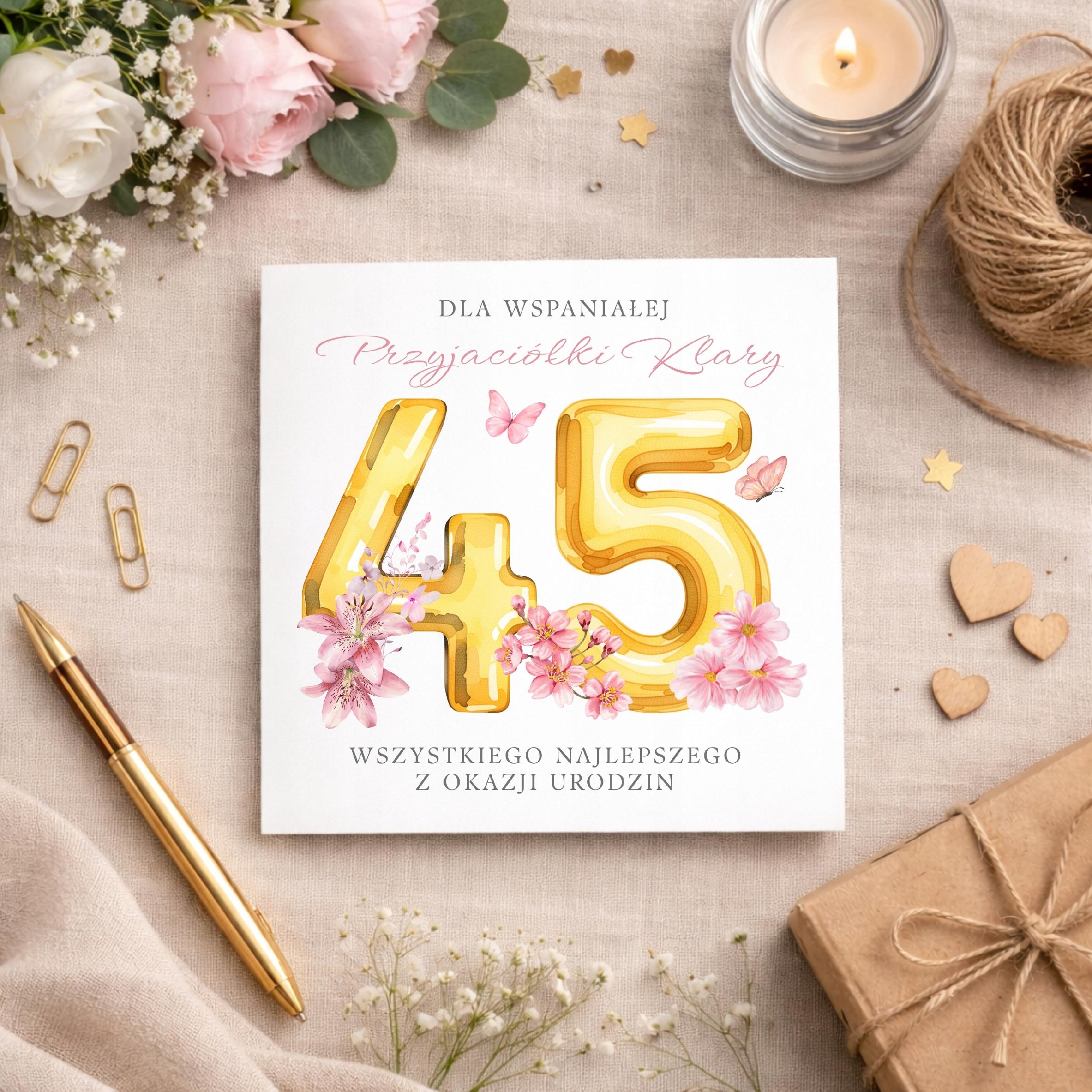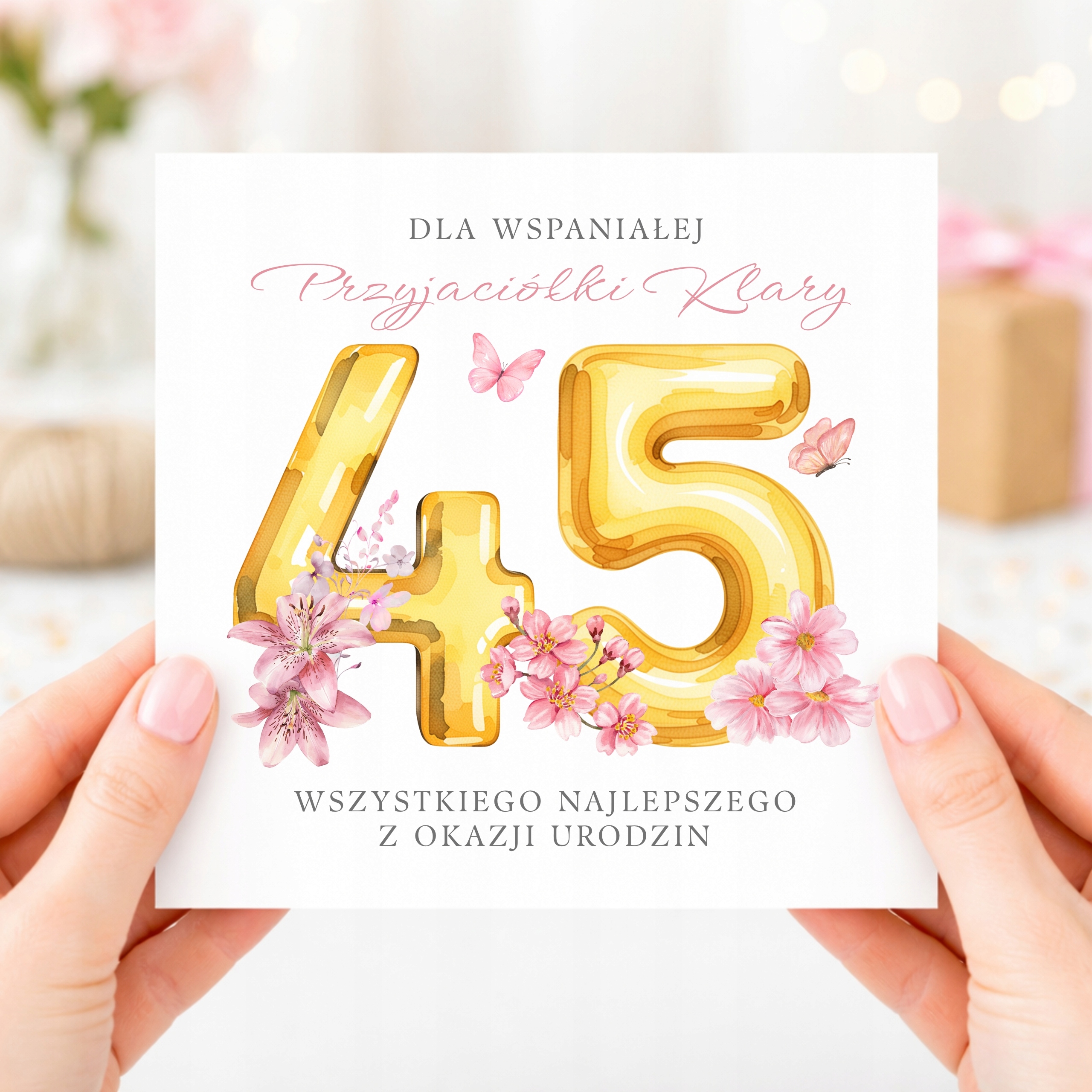 Kartka na 45 Urodziny Kartka Urodzinowa Personalizowana na Prezent