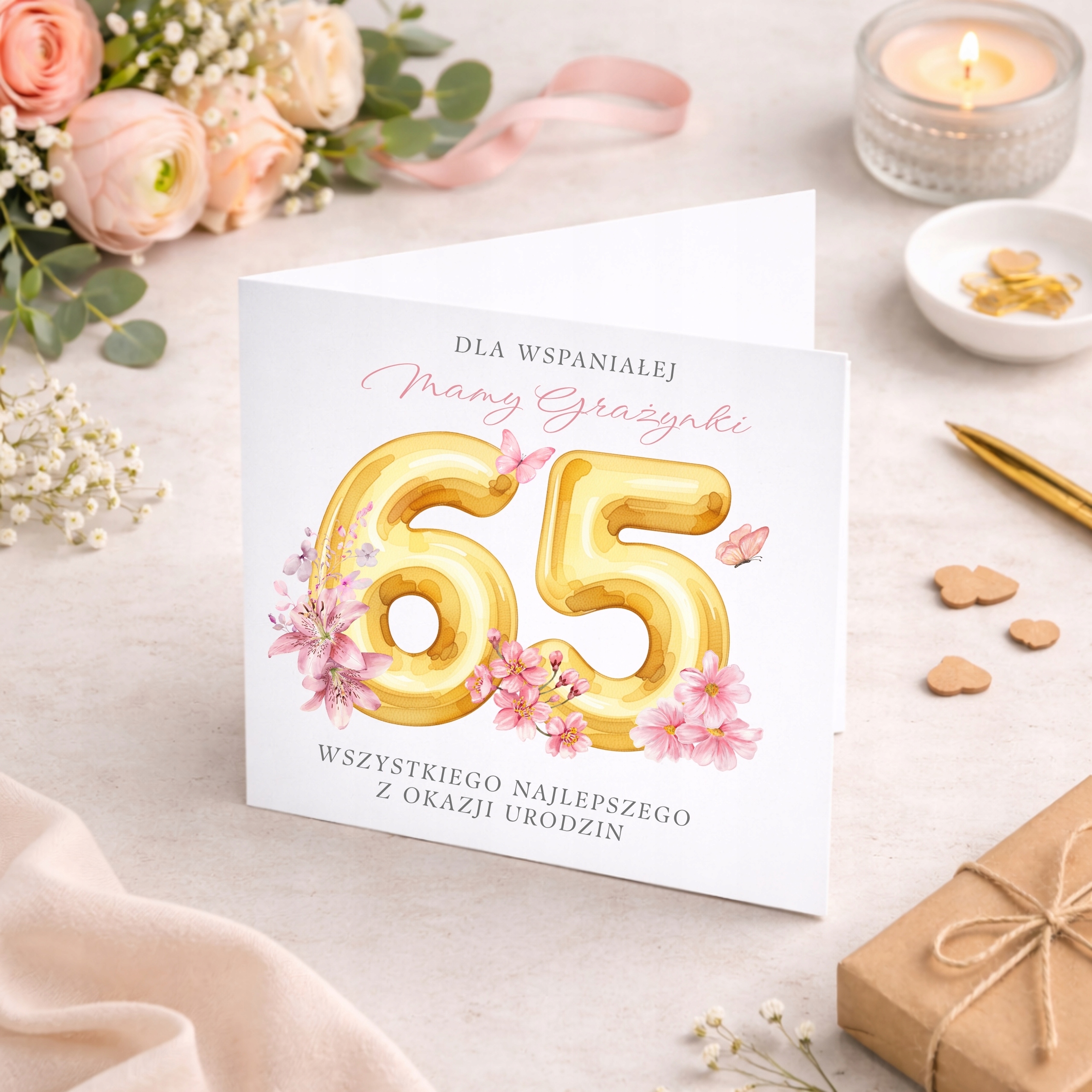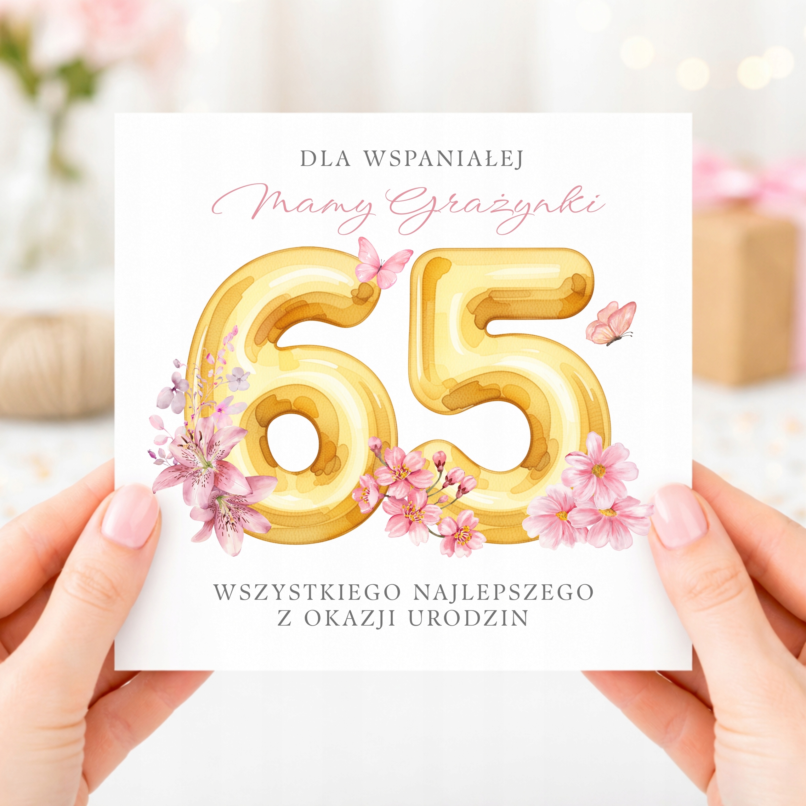 Kartka na 65 Urodziny Kartka Urodzinowa Personalizowana na Prezent