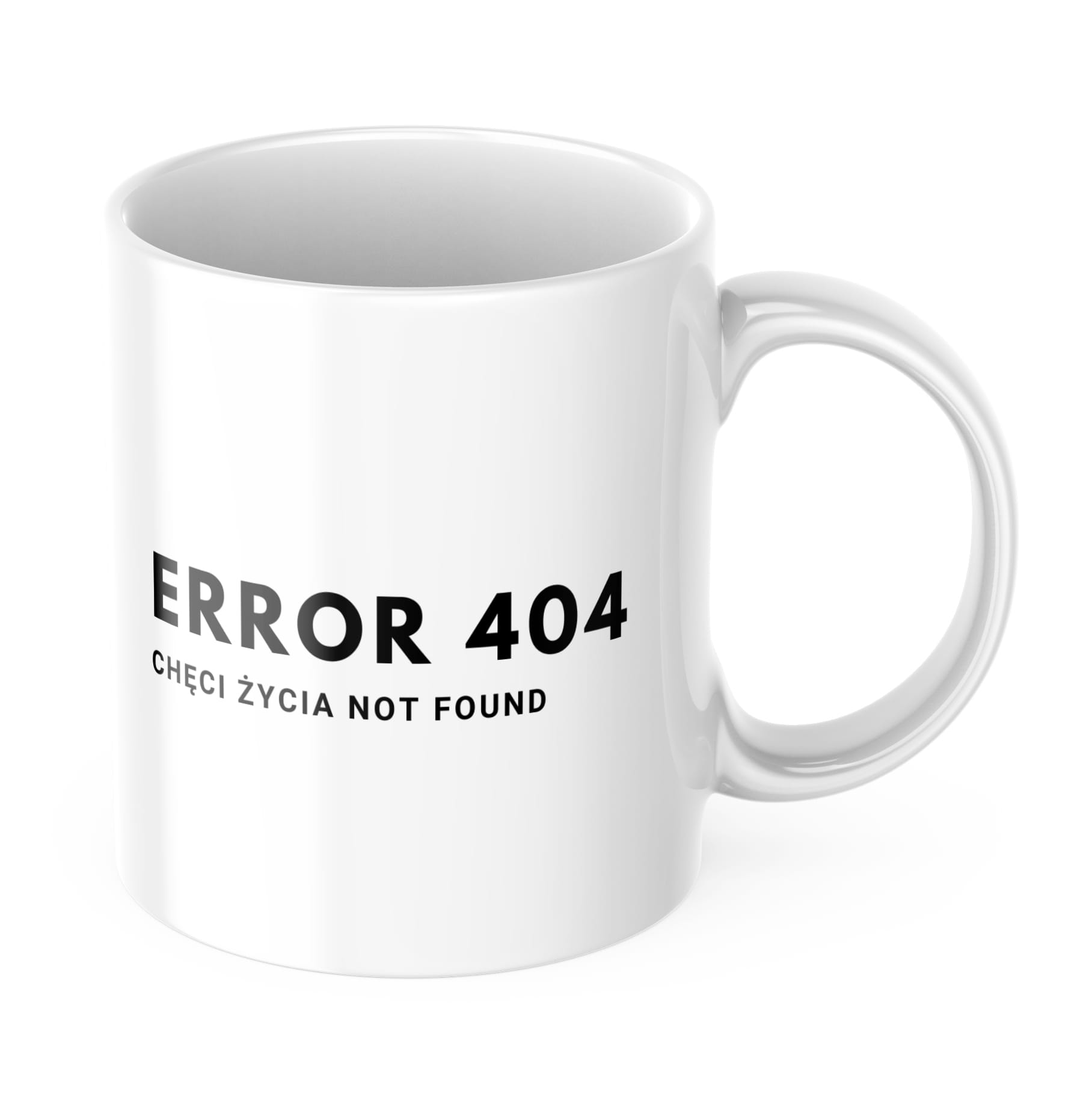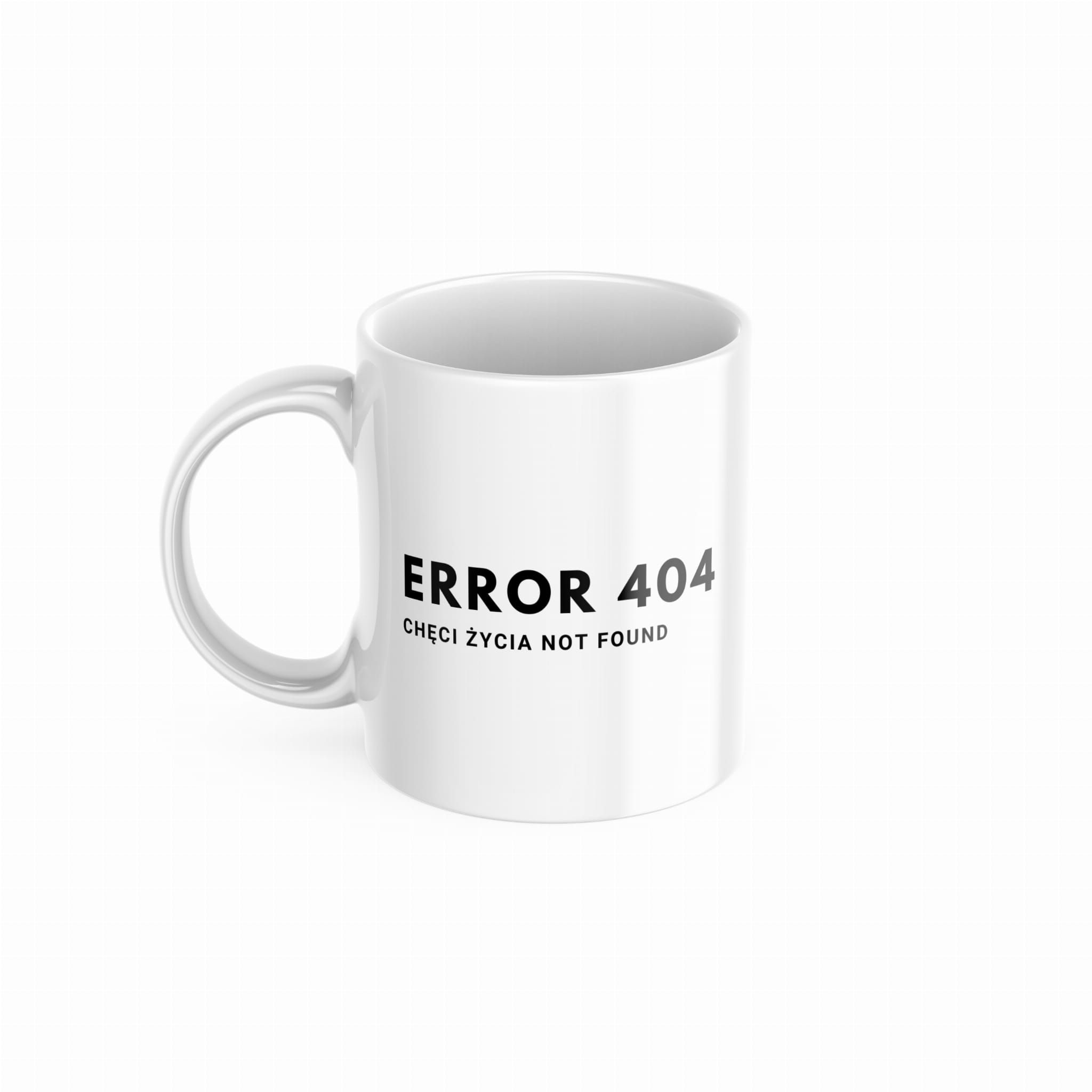 Napis „Error 404: Chęci życia not found” w stylu inspirowanym komunikatami komputerowymi nadaje kubkowi wyjątkowy, geekowy charakter, co sprawi, że będzie świetnym towarzyszem dla programistów, pracowników biurowych lub każdego, kto zmaga się z poniedziałkowymi porankami i zbyt dużą ilością zadań.
