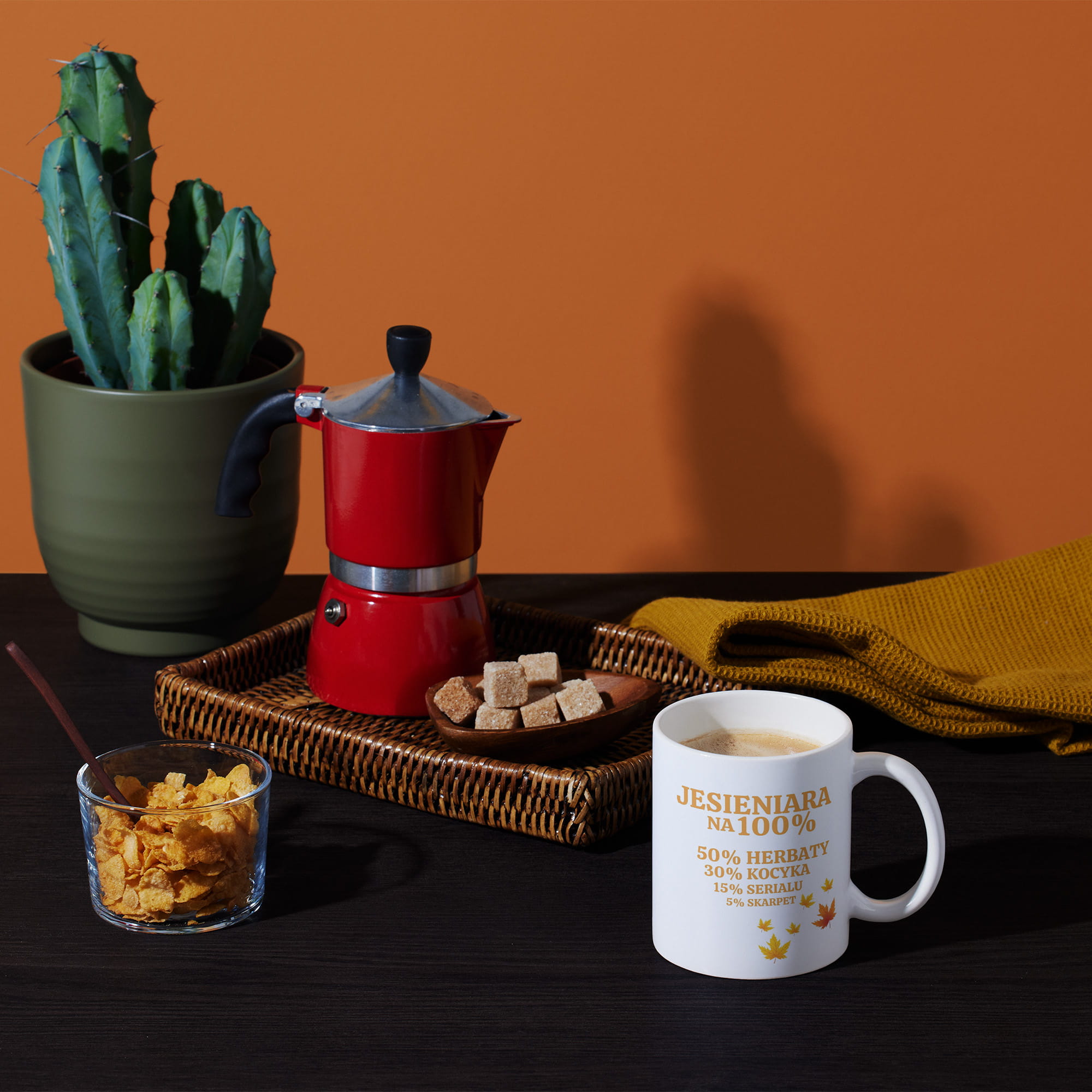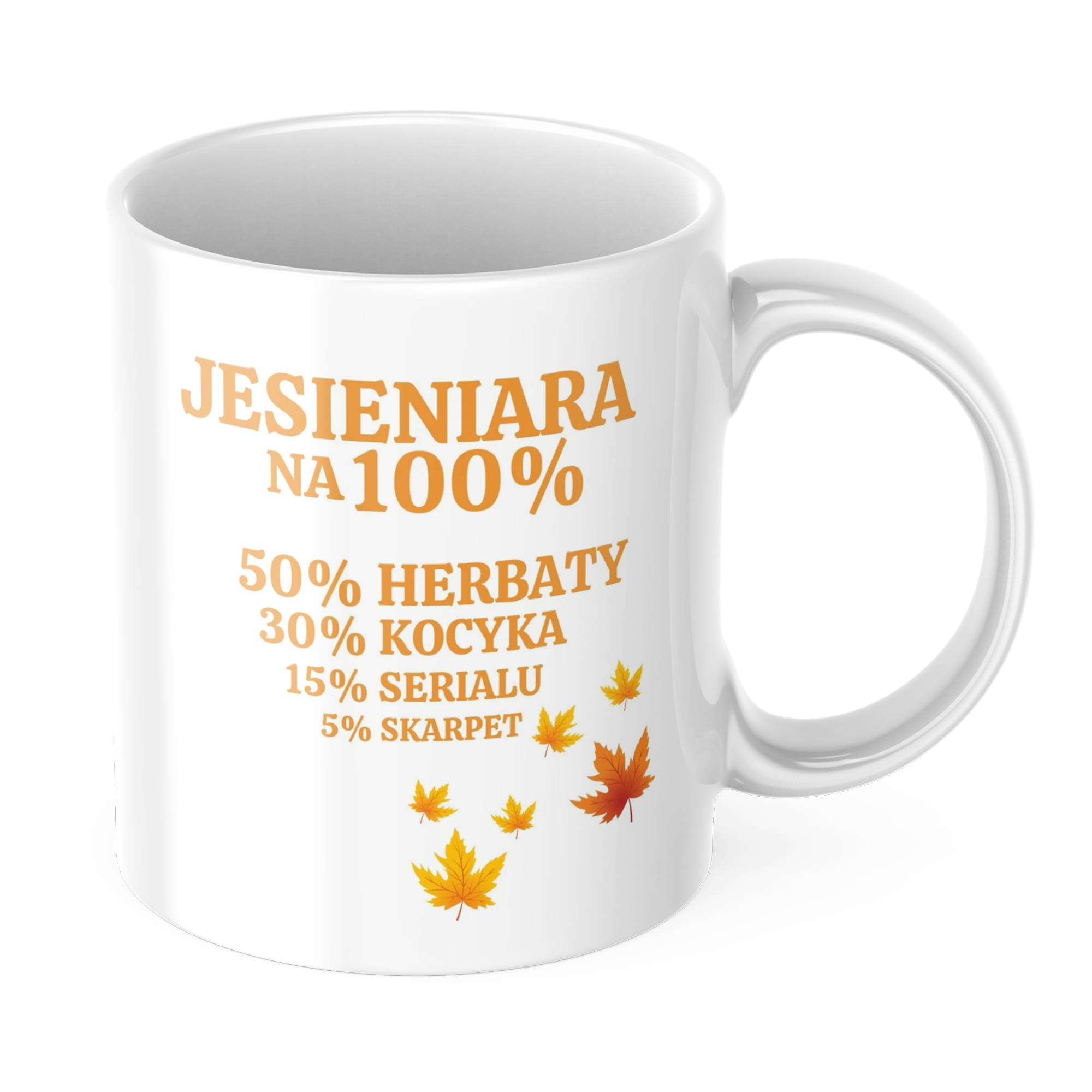 Kubek o pojemności 330 ml z napisem „Jesieniara na 100%”