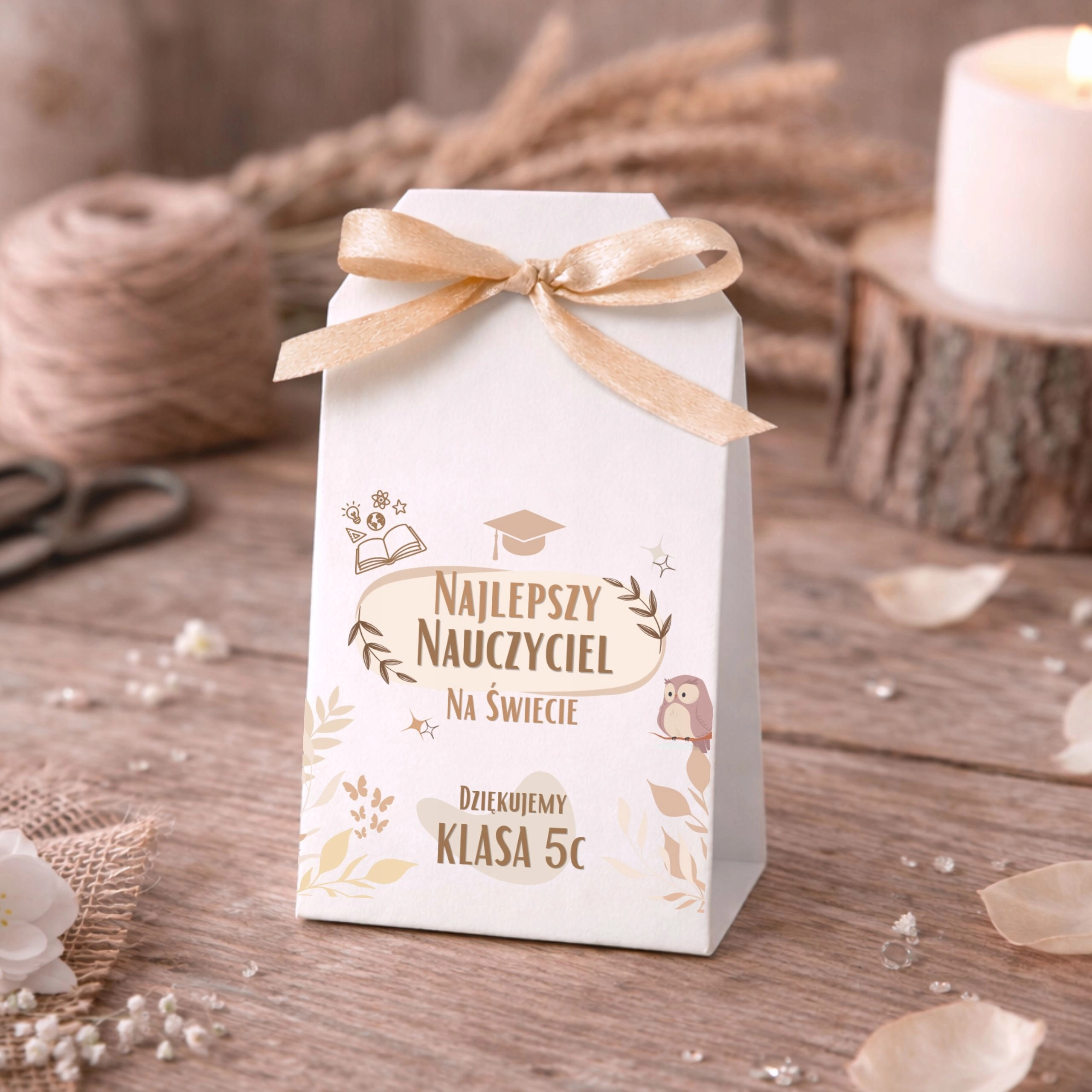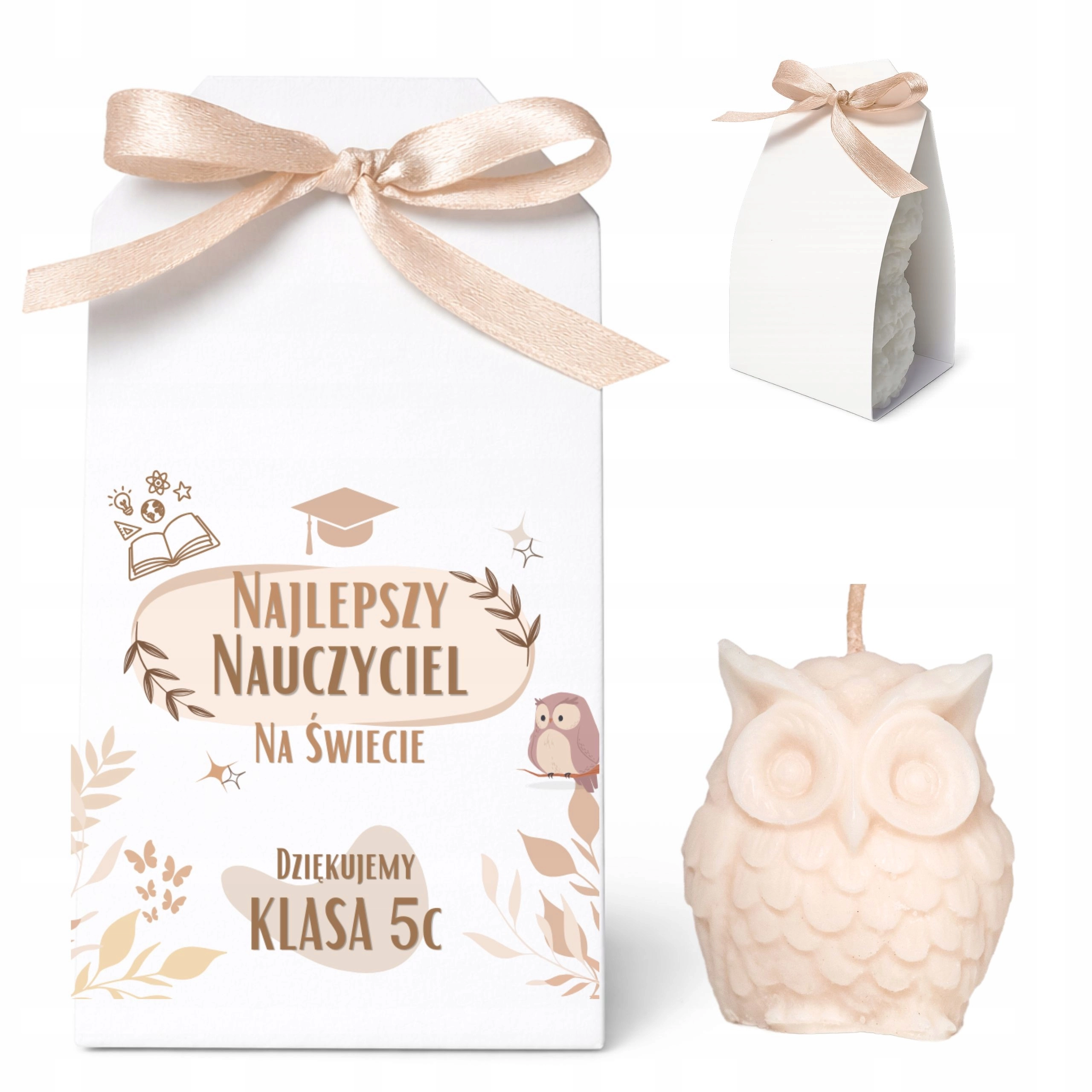 PODZIĘKOWANIA 3 SZT. DLA NAUCZYCIELA ŚWIECA SOJOWA SOWA PERSONALIZACJA