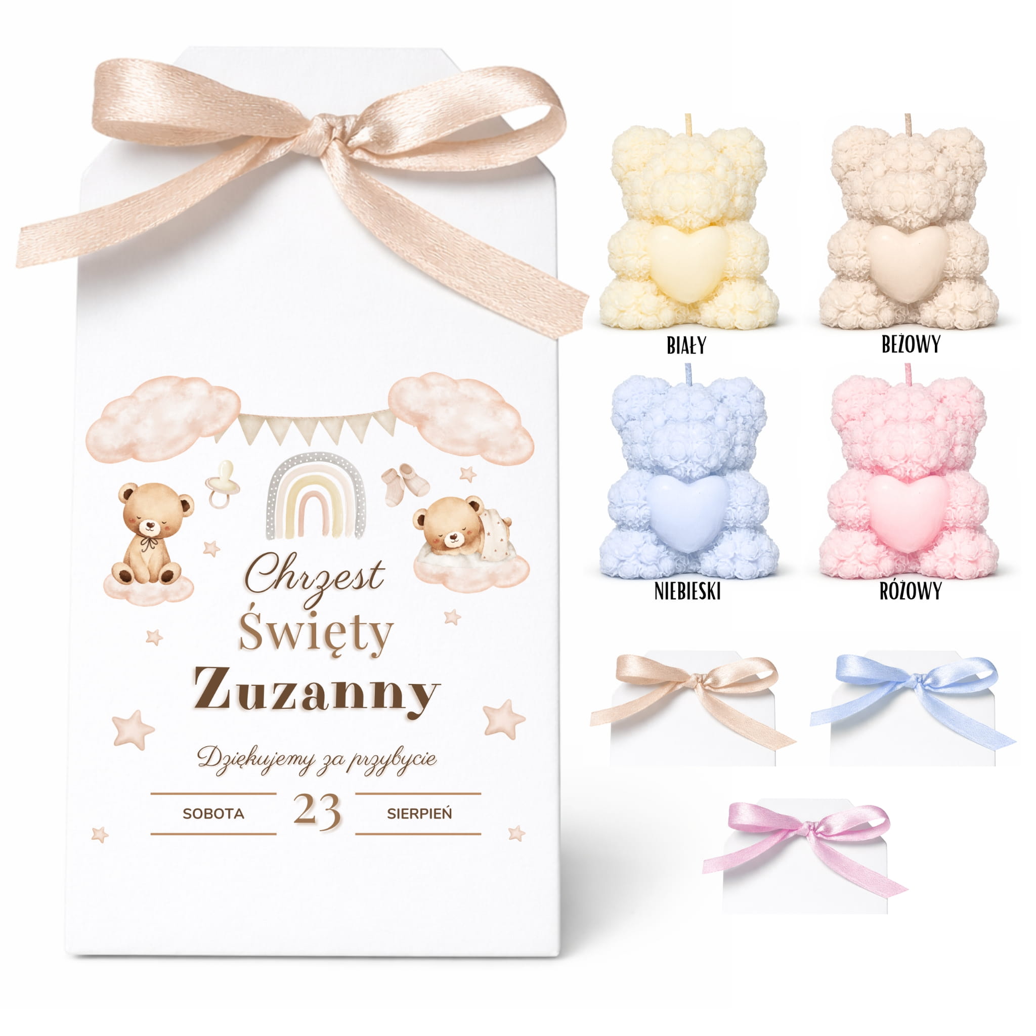 - ✅ Kolor wstążki: Beżowy, Niebieski, Różowy