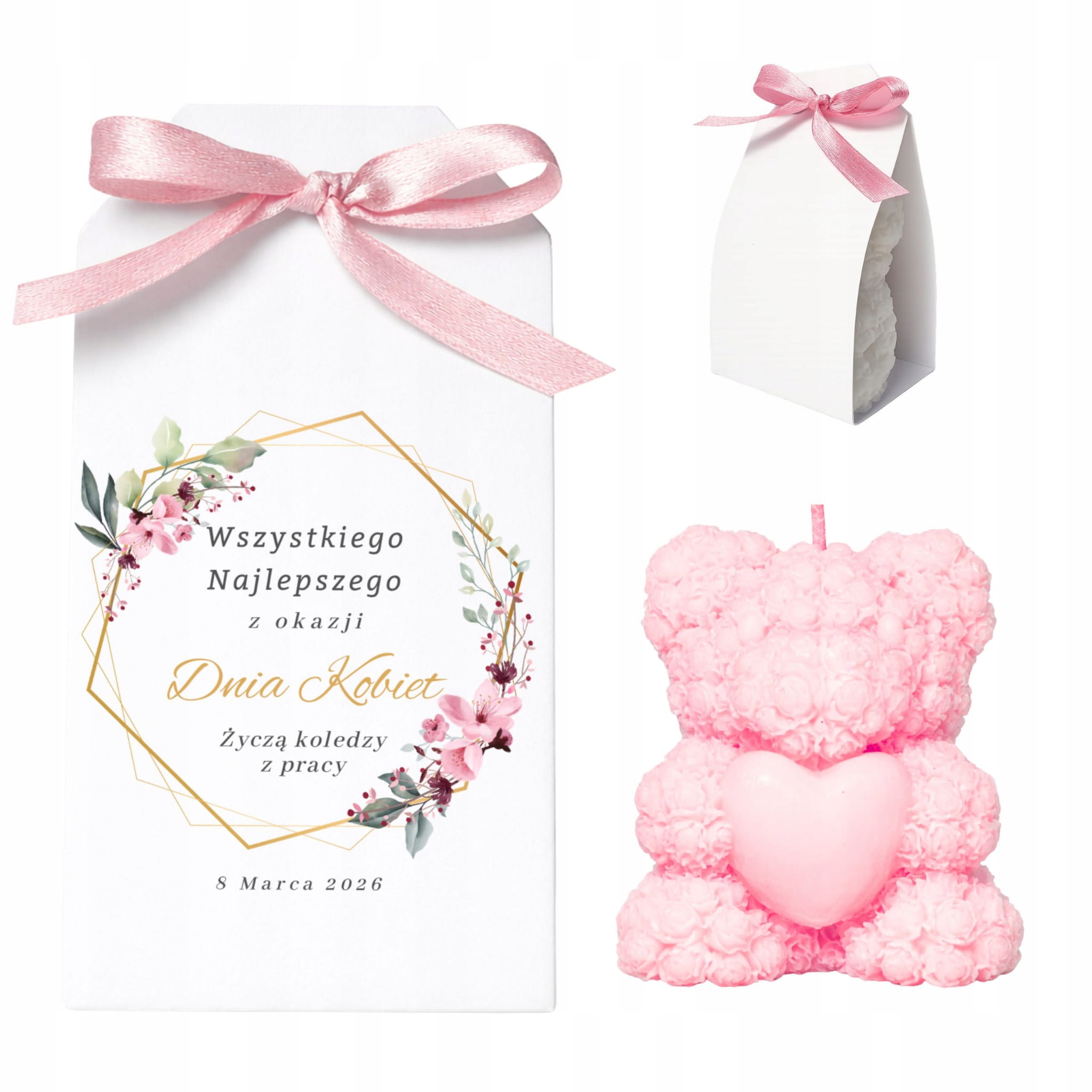 UPOMINEK NA DZIEŃ KOBIET ŚWIECA SOJOWA MIŚ PERSONALIZOWANE 3 SZT.